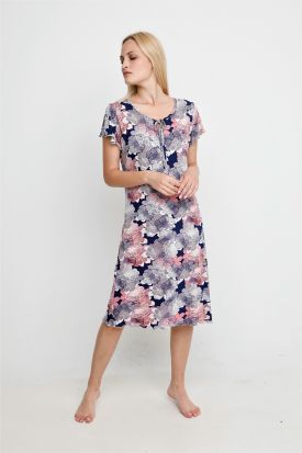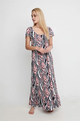 Μάξι Κρουαζέ Εμπριμέ Βισκόζ Νυχτικό-Φόρεμ...